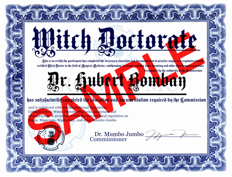 Get your Witch Doctorate from the illustrious and internationally recognized IRCWDWMC